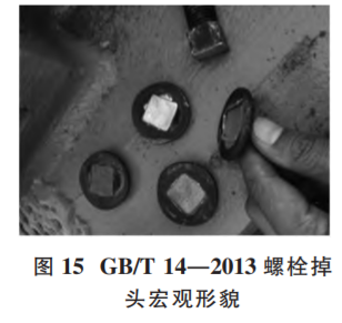 (1)失效案例。該案例為 GB/T 14—2013《扁圓頭方頸螺 栓》,性能等級(jí) 4.8 級(jí),在安裝使用過程中發(fā)生掉頭,見圖 15。